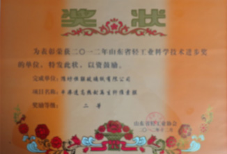 高白度膠帶專用玻璃紙——榮獲“山東省輕工業(yè)科學(xué)技術(shù)進(jìn)步獎(jiǎng)二等獎(jiǎng)”