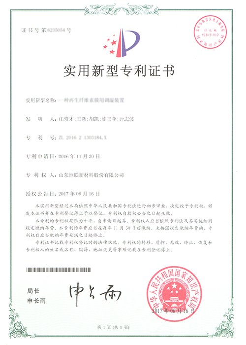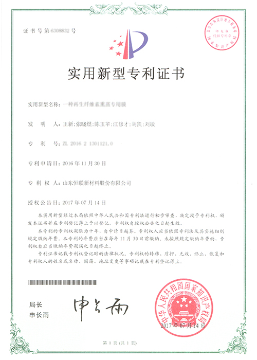 低溫?zé)岱饫w維素膜——被列入“2009年山東省重點技術(shù)創(chuàng)新項目計劃”(魯經(jīng)貿(mào)技函字[2009]41號),已通過山東省級科技成果鑒定。