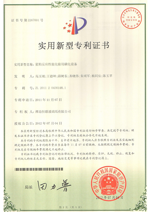 新型溶劑型涂布玻璃紙——被列入“2008年山東省重點技術(shù)創(chuàng)新項目計劃”(魯經(jīng)貿(mào)技字[2008]157號),已通過山東省級科技成果鑒定。