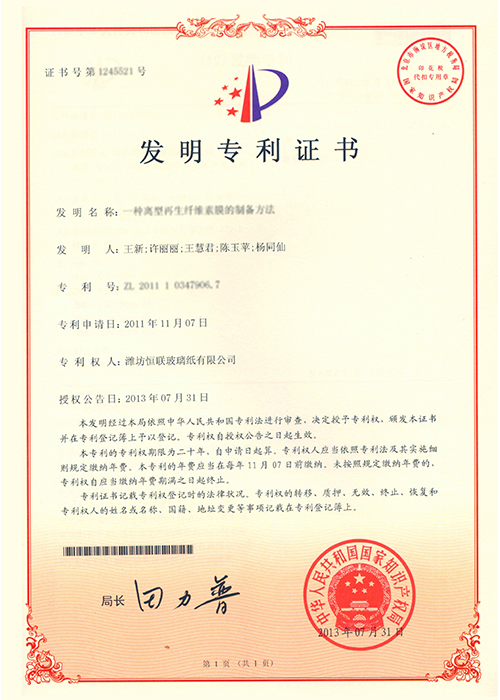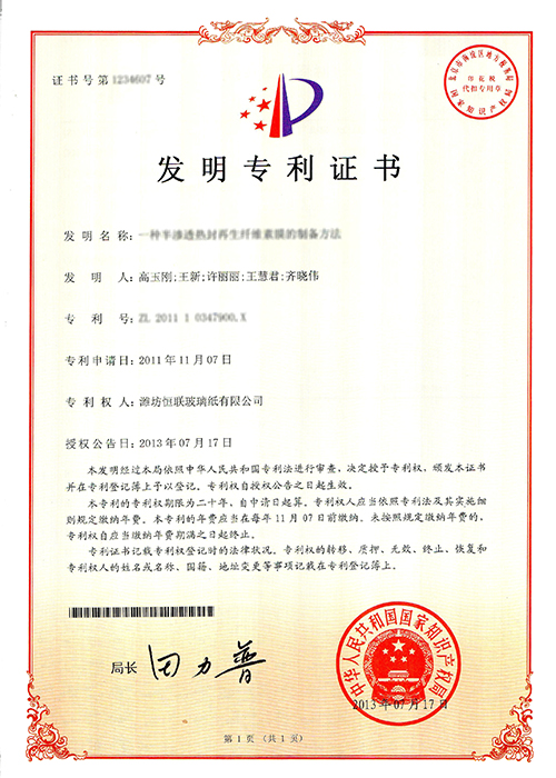 直線打孔再生纖維素膜——被列入“2012年山東省第一批技術(shù)創(chuàng)新項目計劃”(魯經(jīng)信技字[2012]109號),已通過山東省級科技成果鑒定。