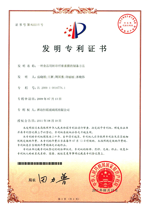 2009-2010年,公司主持制訂的《普通玻璃紙》(GB/T22871-2008)和《食品包裝用玻璃紙》(GB/T24695-2009)兩項國家標(biāo)準(zhǔn)得以頒布實施,奠定了公司在行業(yè)的領(lǐng)軍地位,標(biāo)志著企業(yè)技術(shù)實力又邁上了更高的層次。